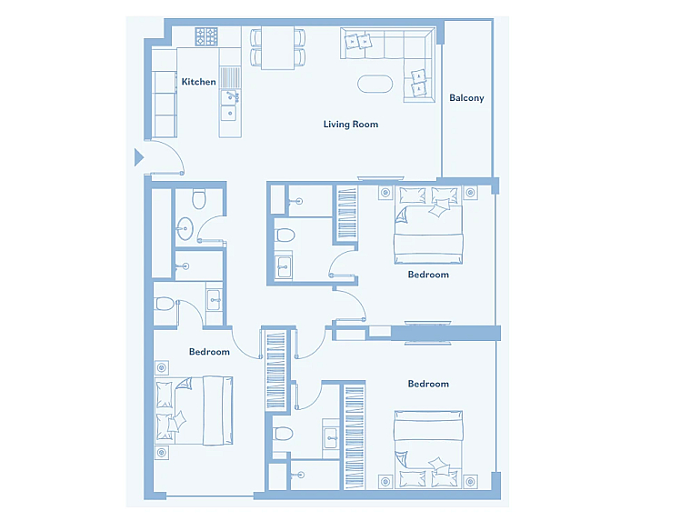 Квартира новая, общей площадью 120 м², расположена на 18 этаже 25-этажного здания. Апартаменты предлагаются без мебели, при этом кухня полностью укомплектована встроенной техникой. Планировка включает три спальни и удобную жилую зону с хорошим естественным освещением, что делает объект подходящим для семейного проживания.
