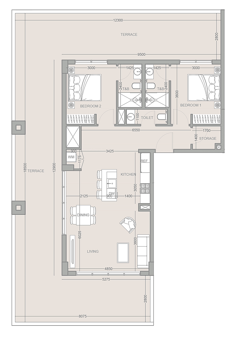 Планировка Type A разработана для максимального комфорта: просторные спальни, наполненные светом за счет панорамного остекления, и открытая гостиная, плавно переходящая в огромную террасу. Здесь каждый квадратный метр подчеркивает статус владельца и создает атмосферу уединенного оазиса в самом сердце динамичного района Jumeirah Village Circle.