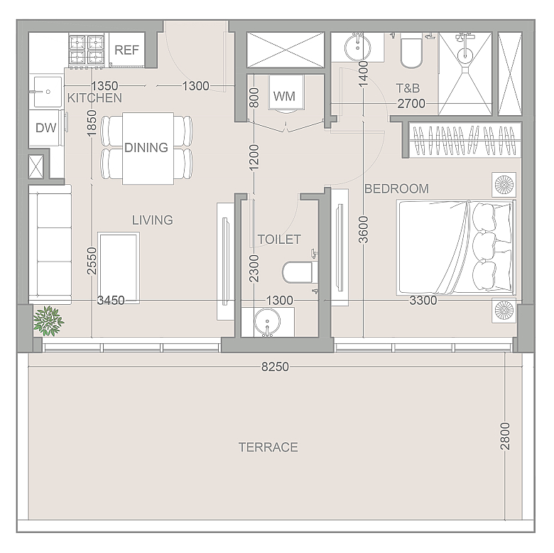 Представляем лимитированное предложение в 1WOOD Residence 2 — апартаменты с одной спальней формата Type E_2, расположенные на самом высоком - 13-м этаже,.