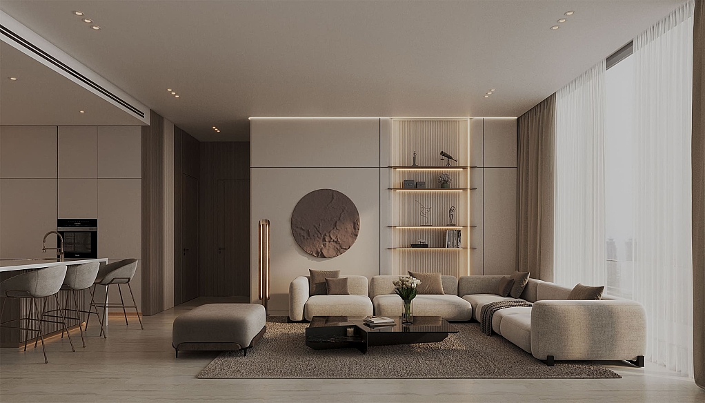 Квартира отличается функциональной планировкой: просторная гостиная объединена с кухонной зоной, есть отдельная спальня и выход на большую террасу с панорамным видом, что обеспечивает комфортное проживание и приватность.