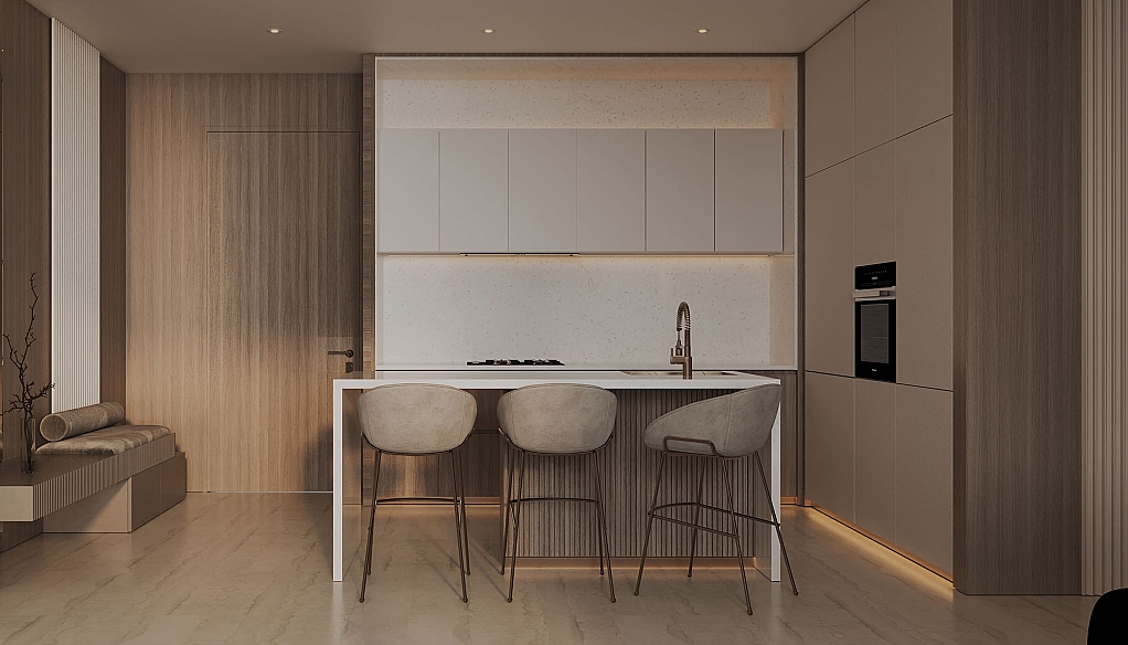 Для резидентов комплекса предусмотрена развитая внутренняя инфраструктура: бассейн, современный тренажёрный зал и зоны отдыха, создающие атмосферу приватного городского курорта.