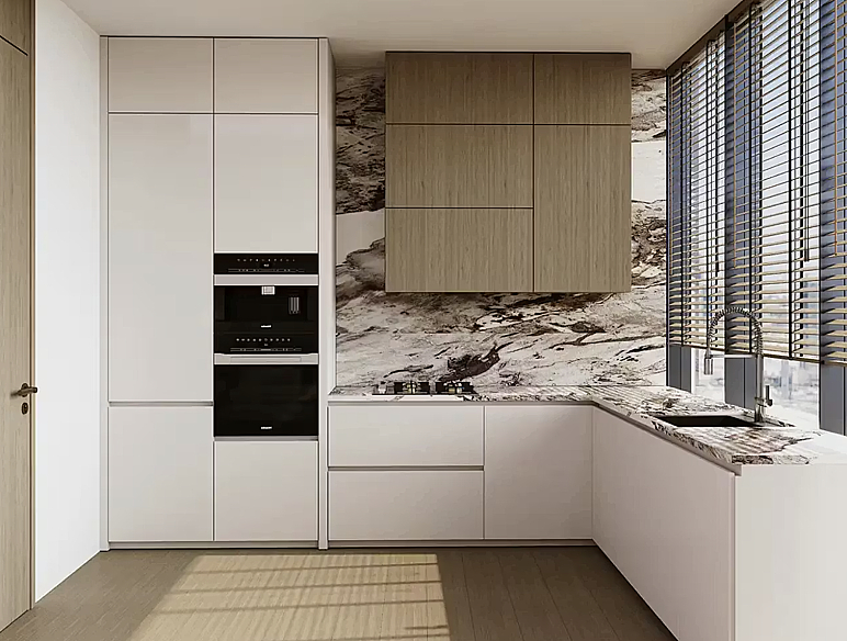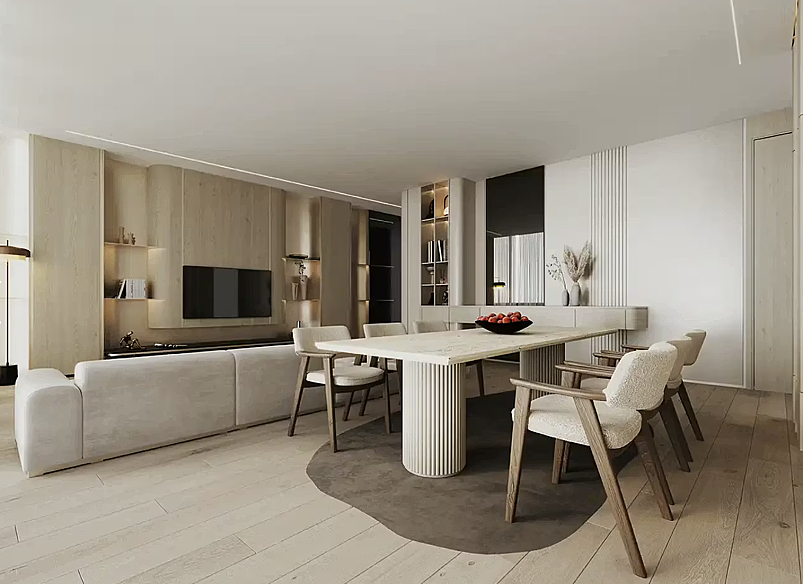 Главная особенность этого объекта — терраса площадью почти 65 м². По размеру она сопоставима с полноценной квартирой, что позволяет организовать здесь несколько зон: от обеденной группы на свежем воздухе до приватного сада или лаунжа. На террасе располагается или джакузи или собственный бассейн.