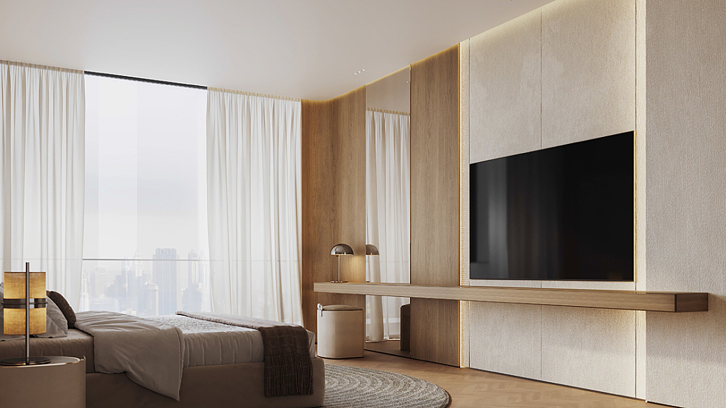 Binghatti Ivory — это современный жилой комплекс высотой 25 этажей, расположенный в районе Al Jaddaf. Интерьеры выполнены в спокойной нейтральной гамме с акцентом на практичность и долговечность материалов. В отделке общественных зон используются металл и камень, создавая сдержанный, аккуратный и современный внешний вид.