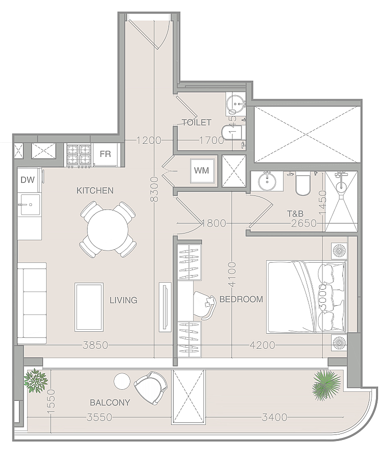 Планировка квартиры функциональна и удобна для повседневного проживания. Пространство включает отдельную спальню, гостиную с кухонной зоной и выход на балкон. Большие окна обеспечивают хорошее естественное освещение и открытый вид на город.