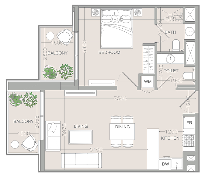 - тип резиденции — 1 Bedroom