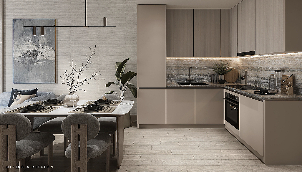 Все резиденции передаются полностью меблированными и оснащены современной кухонной техникой, премиальной сантехникой и системой «умный дом» с поддержкой Alexa, что позволяет владельцам заселиться сразу после получения ключей без дополнительных затрат. Интерьеры выполнены в спокойной и лаконичной эстетике, которая поддерживает комфортный ритм повседневной жизни — от тихих утренних часов до расслабляющих вечеров. Панорамные окна наполняют пространство естественным светом и открывают приятные виды на зелёные дворы и благоустроенные территории комплекса.