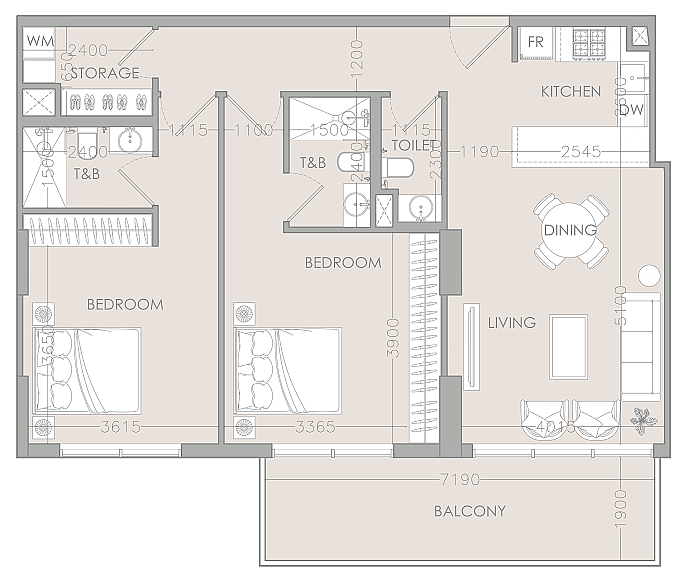 К продаже предлагаются просторные и элегантные апартаменты с двумя спальнями Type B в современном жилом комплексе Ir1dian Park от Object1 — проекте, где архитектурная эстетика органично сочетается с природным окружением и комфортом городской жизни.