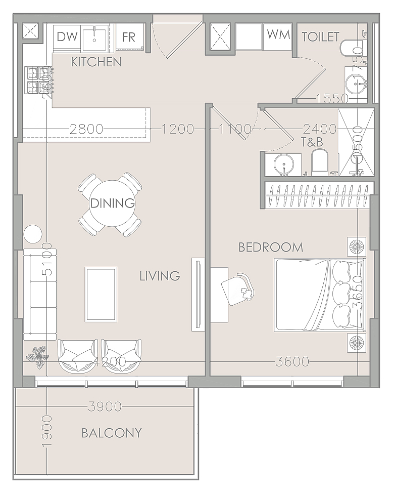 К продаже предлагаются стильные апартаменты с одной спальней Type D_2 в современном жилом комплексе Ir1dian Park by Object1 — проекте, где гармонично сочетаются архитектура, природа и комфорт городской жизни.