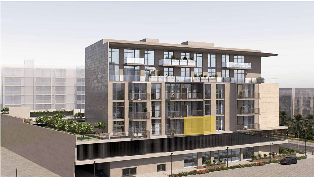 Апартаменты расположены на 1 этаже и имеют общую площадь 71 м². Продуманная планировка обеспечивает удобное зонирование пространства, а балкон площадью 8 м² становится приятным дополнением к интерьеру — идеальным местом для отдыха и наслаждения видом на Dubai Sports City.