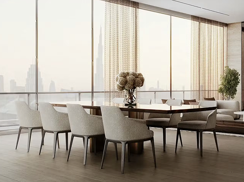 Резиденция находится на 17 этаже, благодаря чему из панорамных окон и с террасы открываются великолепные виды на Dubai Canal, благоустроенную набережную Dubai Canal Boardwalk и спортивную инфраструктуру комплекса. Просторная терраса создаёт идеальное пространство для отдыха, встреч с гостями и наслаждения атмосферой набережной.
