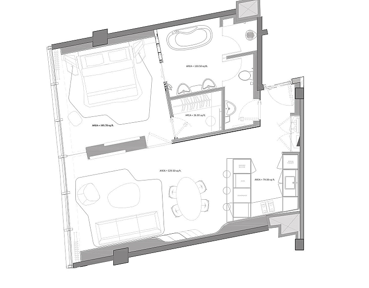 - Площадь: 85 м² (915 sq. ft.).