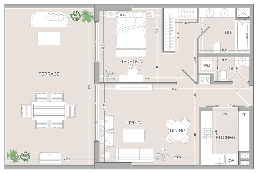 На первом этаже инновационного комплекса V1stara House представлены к продаже просторные и стильные апартаменты с одной спальней Type B — идеальный выбор для тех, кто ценит современный дизайн, функциональность и атмосферу премиального комфорта.