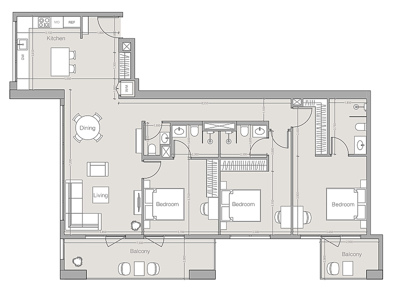 К продаже предлагаются просторные апартаменты с тремя спальнями Type A в премиальном комплексе V1TER Residence от Object1 — идеальный выбор для тех, кто ценит высокий уровень комфорта, современный дизайн и впечатляющие виды на город.