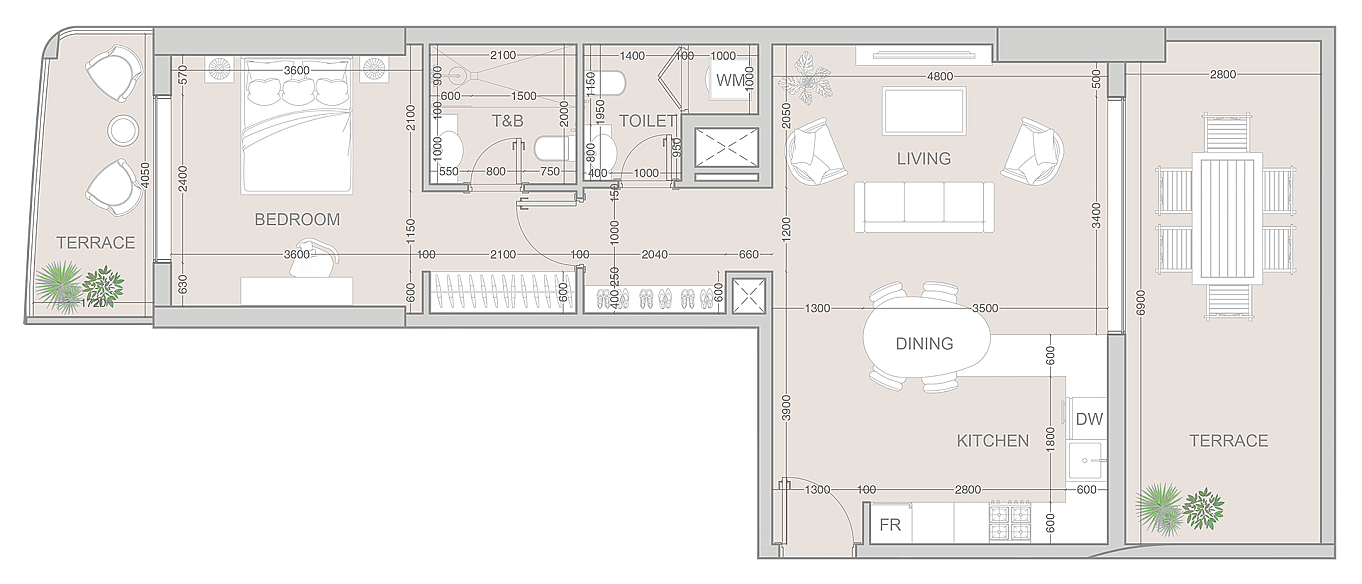 На 1 этаже престижного комплекса V1VID Tower от Object1 расположена изысканная 1-спальная резиденция Type A (Unit 101) — идеальный вариант для тех, кто ценит пространство, стиль и премиальный уровень комфорта.