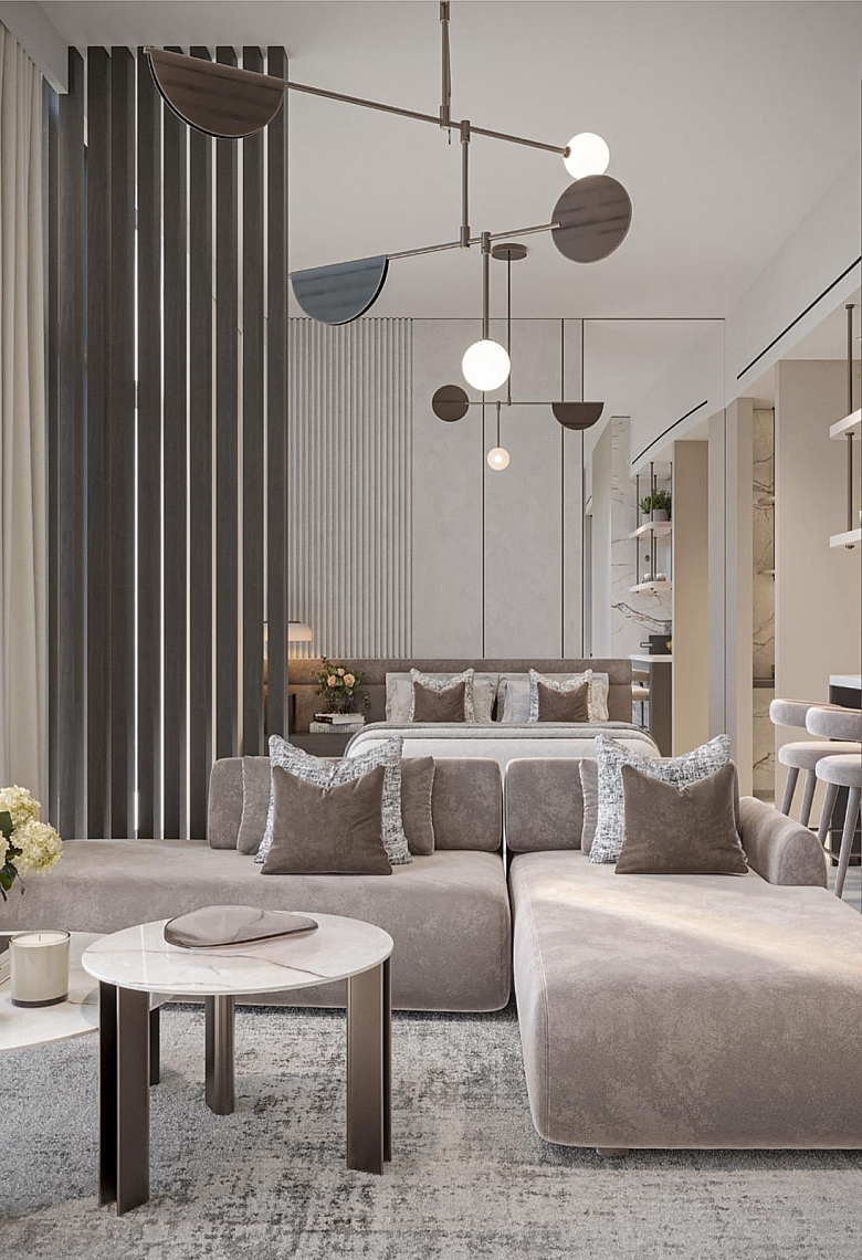 Площадь жилой зоны составляет 47,8 м², что обеспечивает комфортное пространство для жизни и отдыха. Из окон открывается вид на инфраструктуру и зоны отдыха комплекса, создавая приятную и спокойную атмосферу.