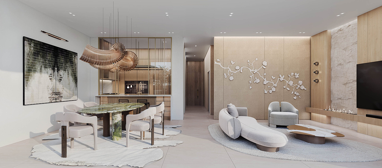 Окунитесь в атмосферу уюта и элегантности в просторном двухэтажном таунхаусе площадью 253 кв.м. Просторная планировка, высокие потолки, панорамные окна и виды на зеленые ландшафтные сады создают идеальное пространство для комфортной семейной жизни.