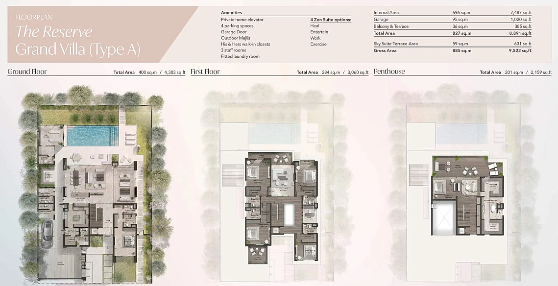 Это одна из вилл изысканной коллекции Grand Villas, которые представляют собой воплощение утончённого стиля и продуманной роскоши. Резиденция выполнена в средиземноморском стиле. Фасад виллы отражает классическую эстетику с утончёнными деталями.