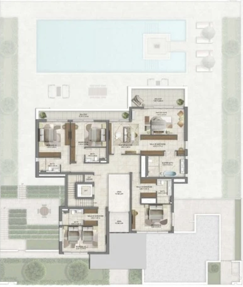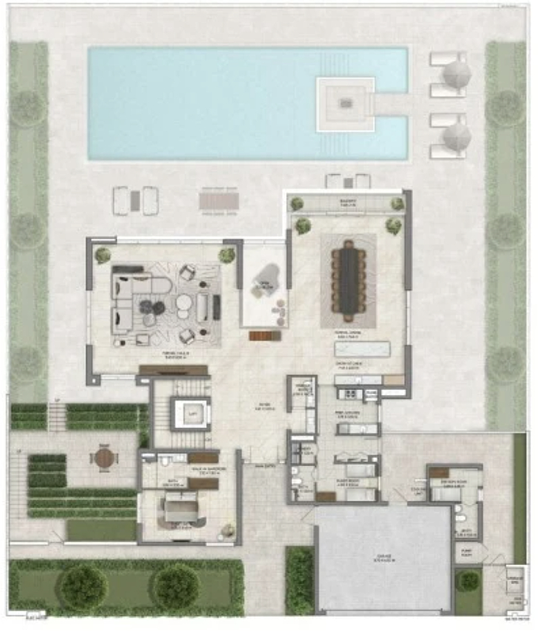 Каждая деталь дома продумана до мелочей: в распоряжении владельцев — собственный бассейн, террасы и балконы, уютное патио, гараж, лифт, прачечная, несколько кладовых помещений, а также отдельные комнаты для водителя и обслуживающего персонала. Такое наполнение делает виллу максимально удобной как для повседневной жизни, так и для приёма гостей.